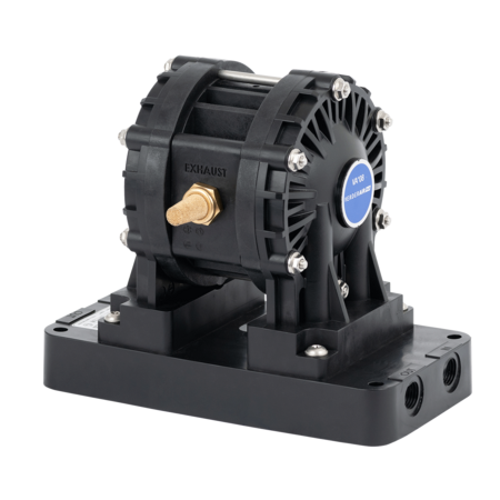 Les pompes à double membrane non métalliques VA+08 sont des solutions polyvalentes conçues pour un fonctionnement fiable dans un large éventail de secteurs et d'applications. Équipées de clapets anti-retour à ressort en Hastelloy, ces pompes peuvent être installées dans pratiquement n'importe quelle orientation, offrant une flexibilité maximale. La vanne Pure Air maximise l'efficacité de l'air comprimé, réduisant les coûts d'exploitation tout en augmentant la capacité globale de la pompe.Elles sont disponibles en trois matériaux de carter différents et deux options de matériau de membrane, permettant une adaptation facile à diverses exigences de processus. La VA+08 est particulièrement bien adaptée au transfert en petite quantité, à la vidange de fûts et aux tâches de dosage de base, ce qui en fait un choix pratique et efficace pour les opérations quotidiennes.
