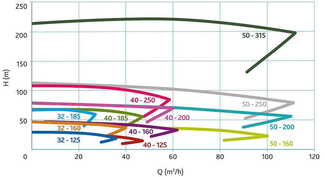 Proprietà Portata massima 110 m3/h Massima altezza di aspirazione 220 m wc Max. Inlet pressure depending on pump type up to 20 bar Viscosità 1000 cP Massima temperatura 140 °C Tipo di girante Open Max. free passage 22 mm Massima potenza del motore 90 kW Velocità 3000 / 3600 rpm Frequenza disponibile 50 / 60 Hz Materials wetted parts Stainless steel 316L or similar Mechanical seal configuration Single bellow, single balanced, quench, double, pressurized barrier Available O-ring materials EPDM, FKM, FEP-FKM, FFKM, Silicone Connessioni BSP fittings. flanges according to EN1092-1/01 & 02. ANSI flanges. smooth tubes Surface finish Industrial, internal welds not hand polished, electropolished Certificati MEI. ATEX. EAC -